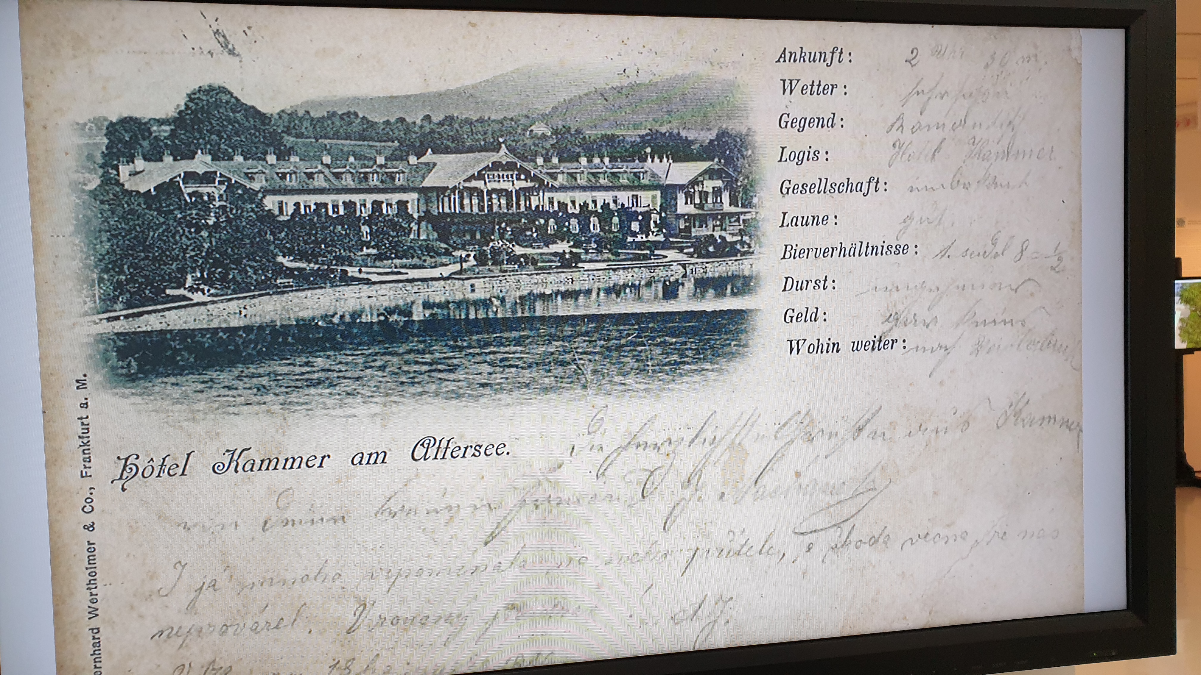 엽서에 "Laune(기분)", "Bierverhältnisse(맥주 비율)", "Durst(목마름)" 등을 적는 항목이 있다는게 재미있었습니다. 이 엽서를 쓴 사람이 누구였는지 기억이 나지 않습니다. 아마도 클림트는 아니었던 것 같습니다. 클림트의 필체는 아래 사진에서처럼 정돈되지 않았습니다.