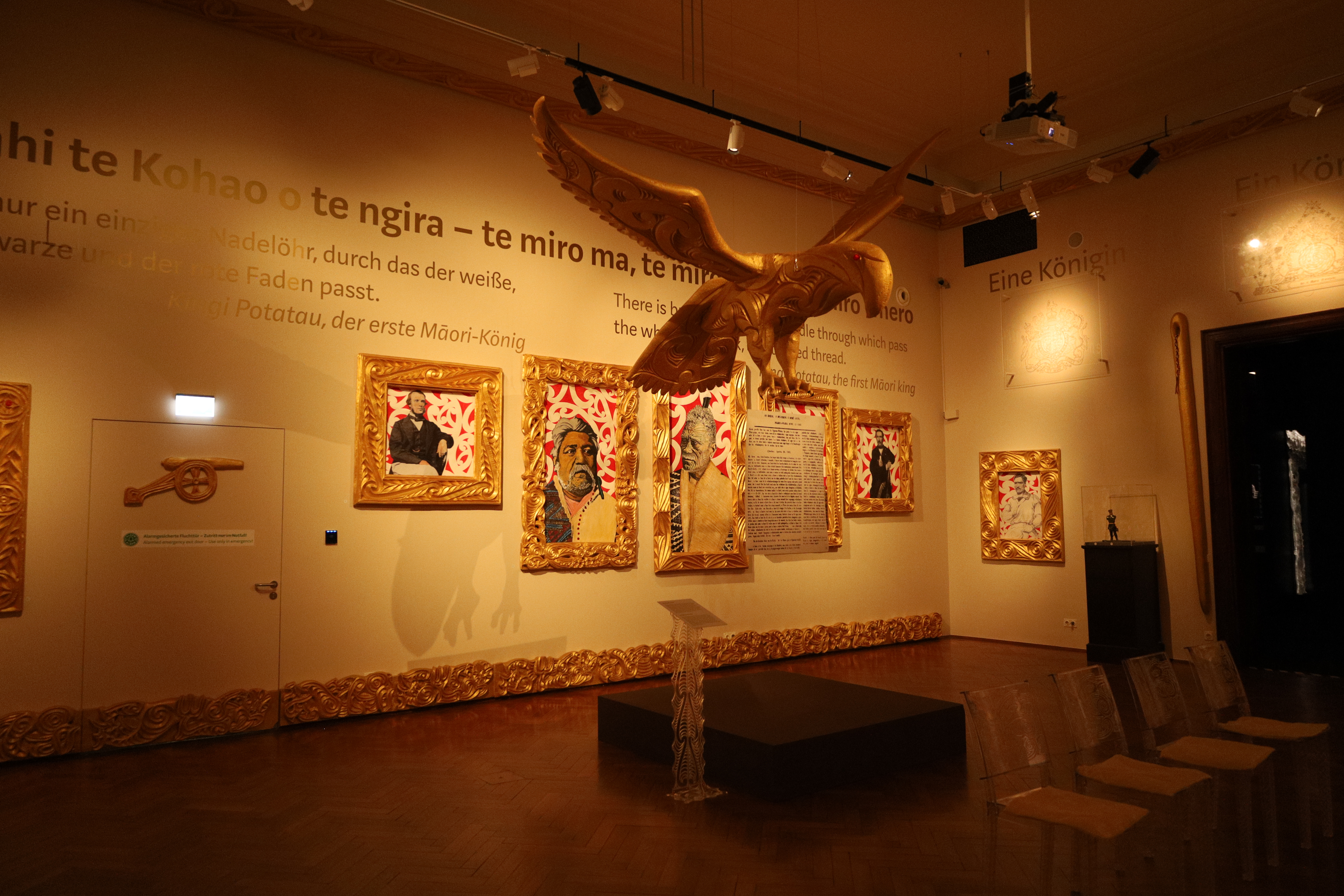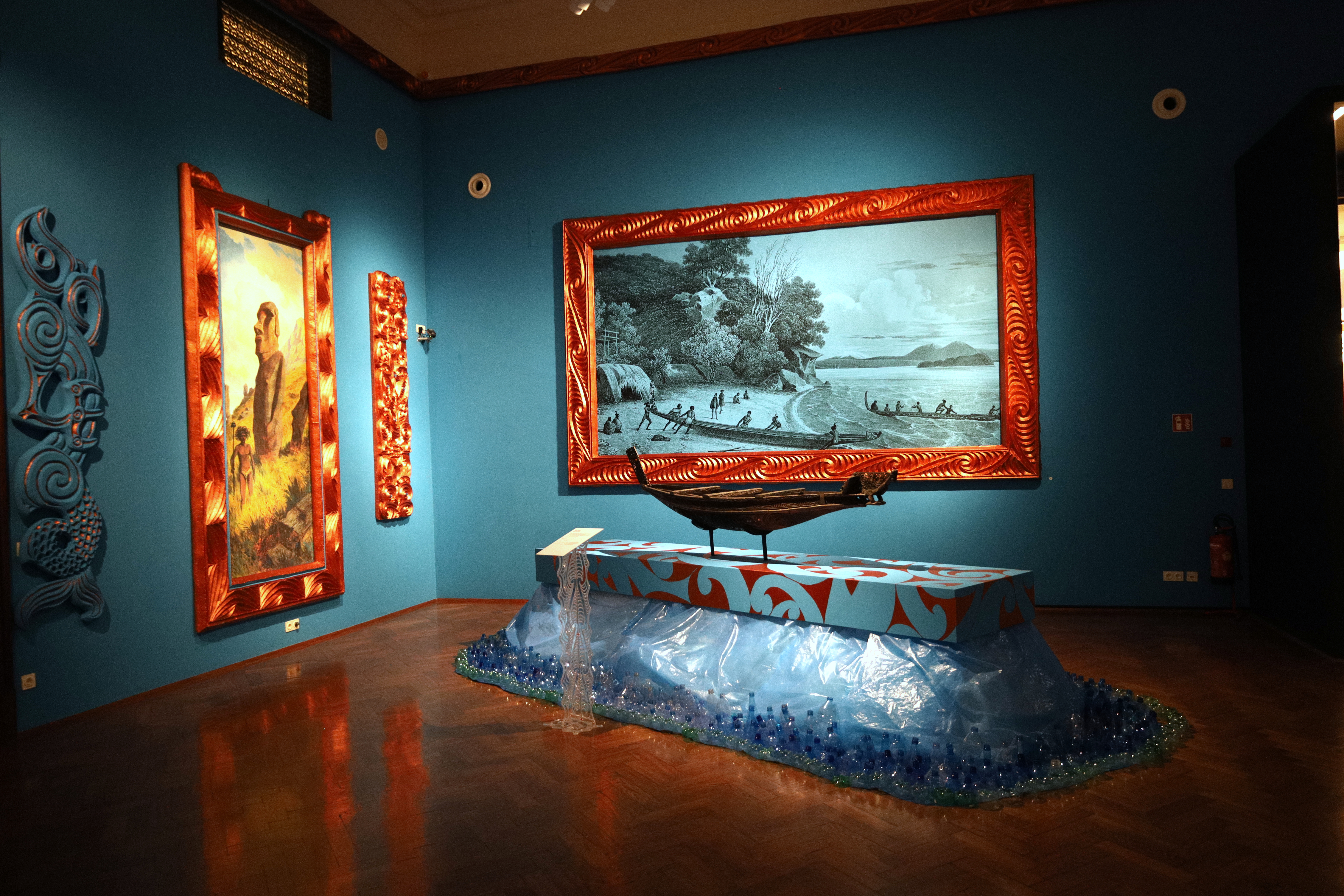 첫 번째 방은 파란색 벽에, 카누, 물고기 등이 장식들이 인상적이었고, 마오리 어부들의 역사에 관한 그림들이 전시되어 있었습니다.