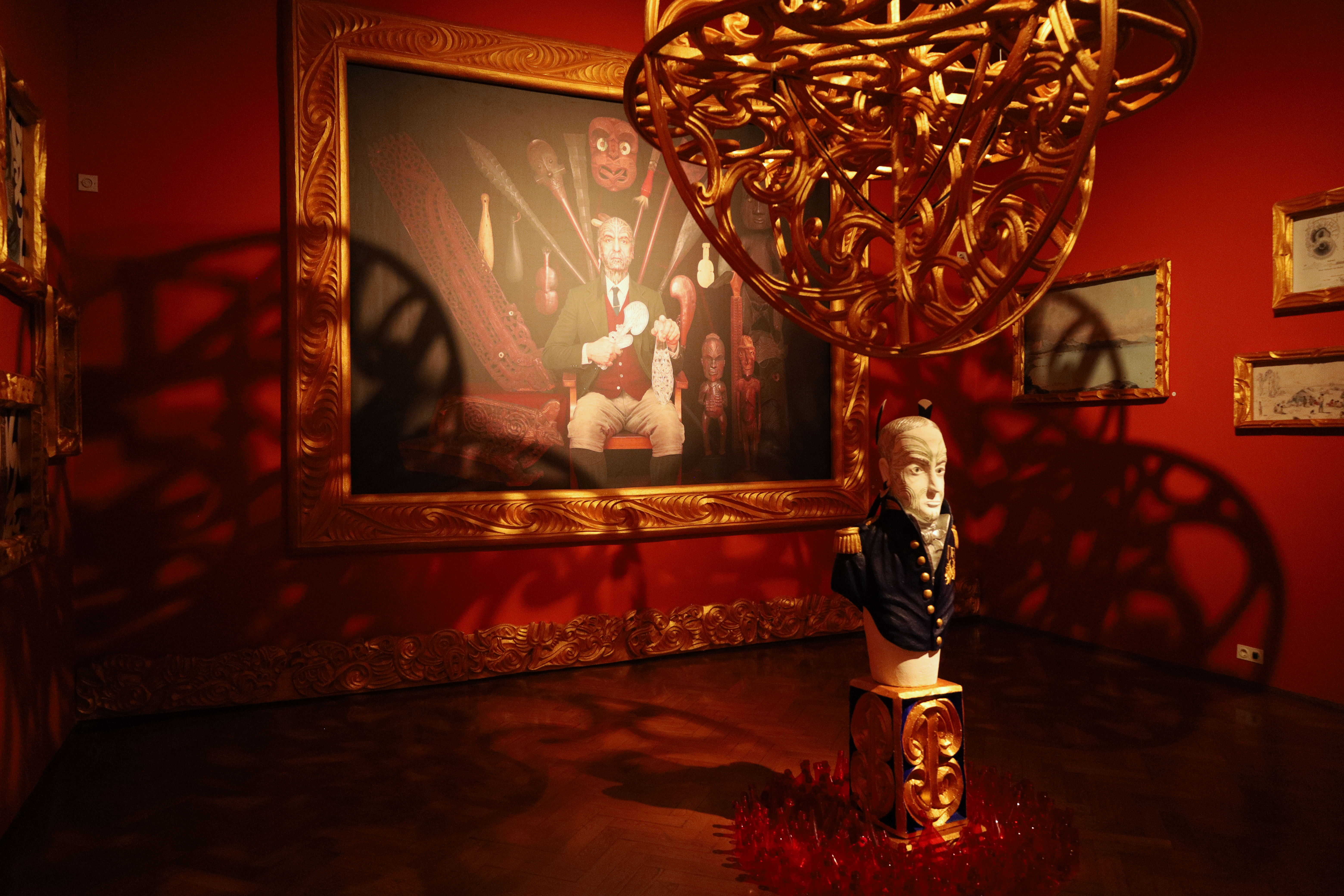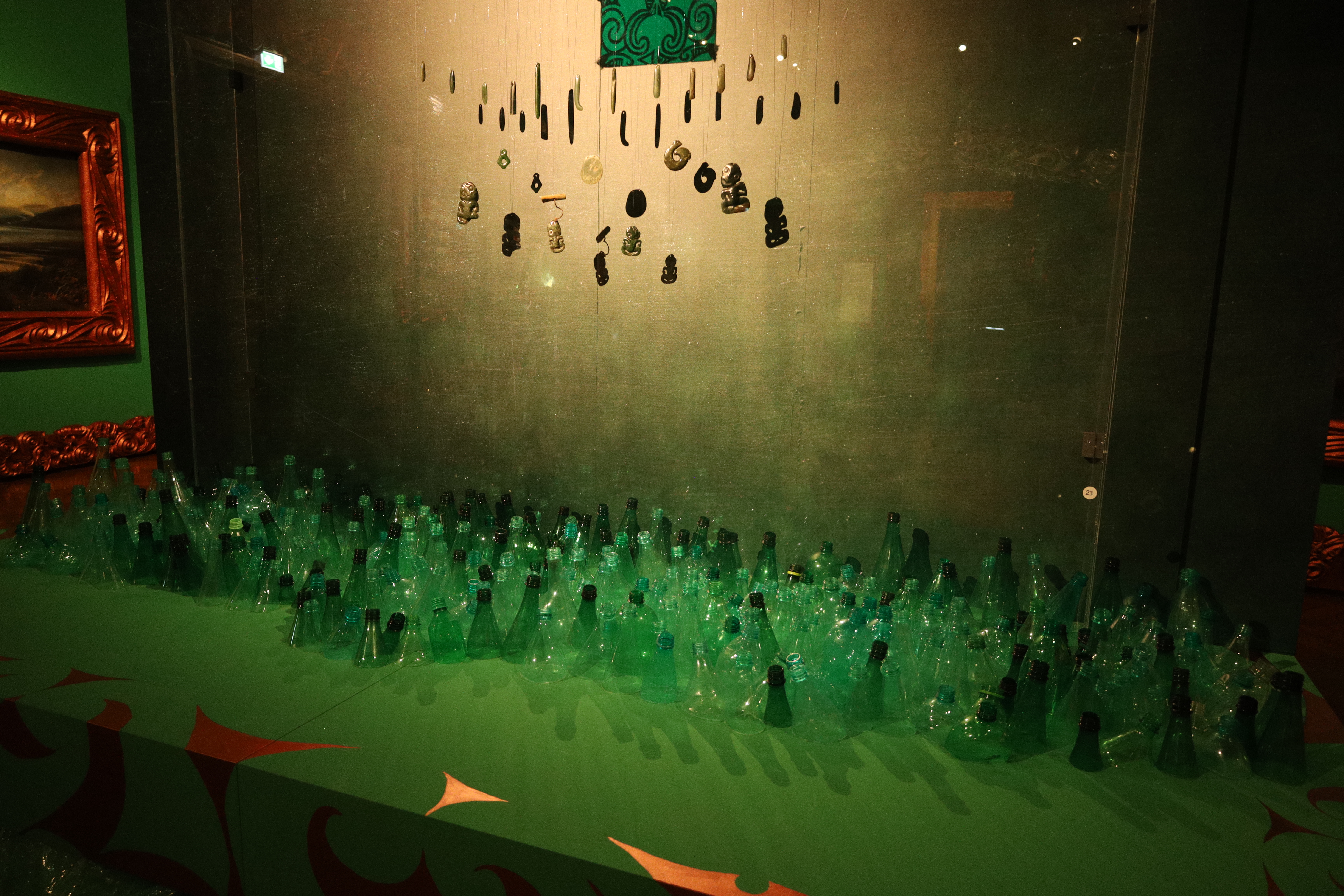 조지 누쿠(George Nuku)라는 뉴질랜드 마오리 예술가의 플라스틱, 구슬, 옥 뼈 등 재활용 재료들로 만들어진 설치미술 작품들이 전시되어 있었습니다. 리사이클링 아트(Recyling art)였기 때문에 이 전시회에 더 관심이 갔었습니다. 또 기후 위기, 식민지화, 마오리 문화 등이 혼합적인 주제로 이국적인 분위기 작품들이 매우 흥미로웠습니다.