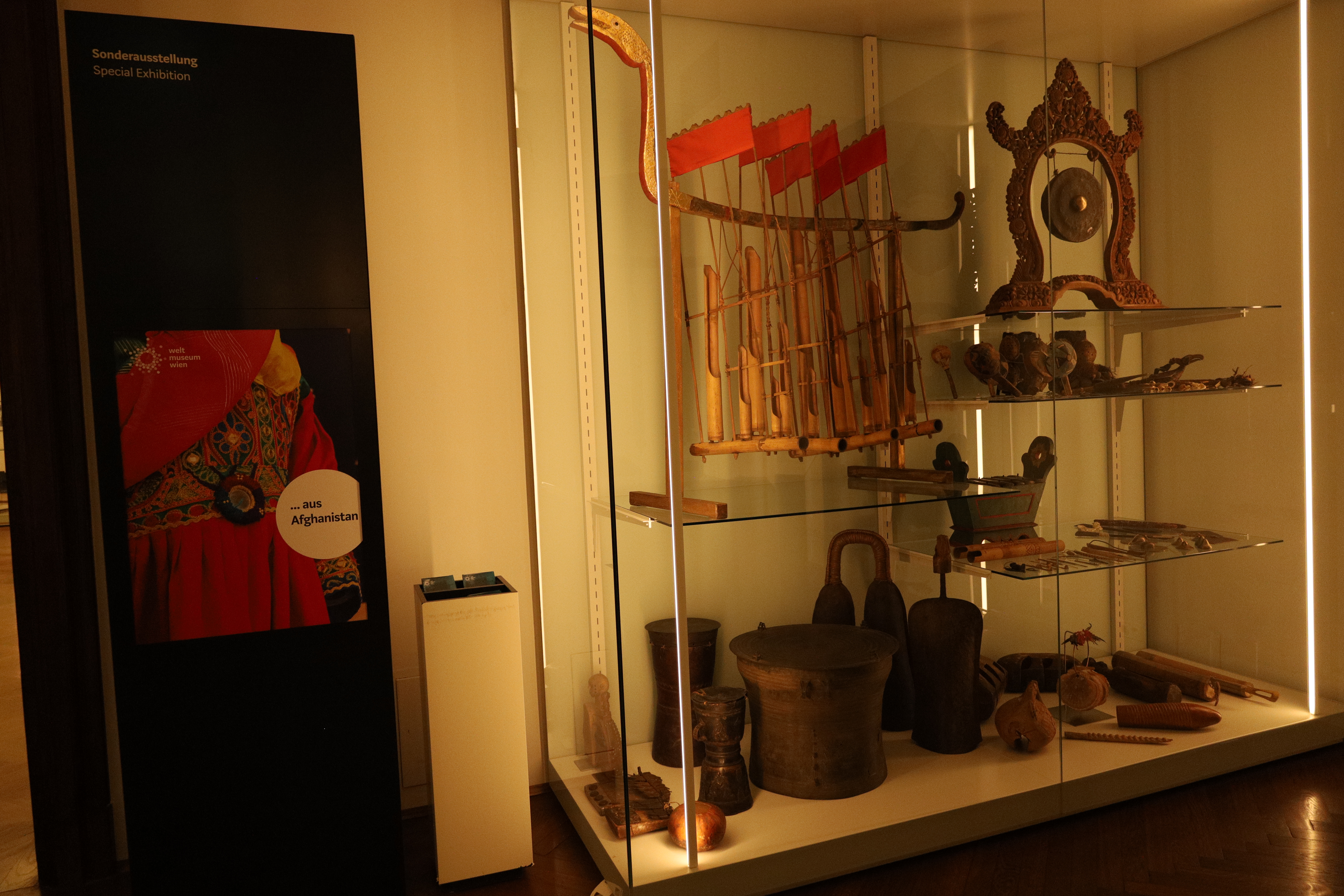 박물관 건물이 꽤 큰 편입니다. 현재 "책거리"전과 "Oceans.Collections.Reflections"전이 특별전입니다. 상설전은 규모가 매우 큰데, 크게 궁정 무기고 전시회, 악기 컬렉션, 오대륙 민속 유뮬 전시회가 있습니다. 궁정 무기고전과 악기전은 세계 박물관에 위치해 있지만, 사실은 예술사 박물관에 속한다고 합니다.