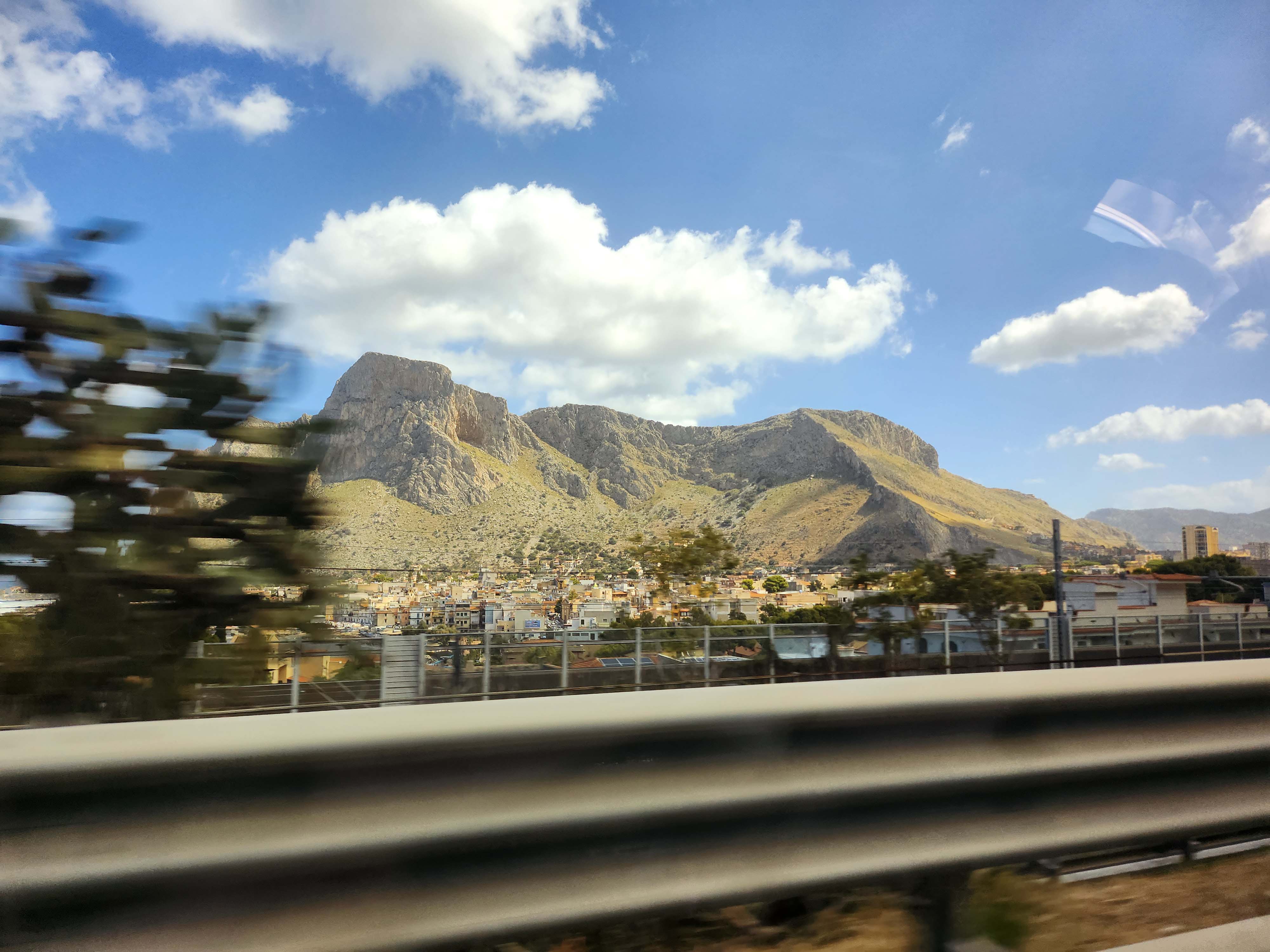 차를 타고 창밖으로 보이는 시칠리아의 풍경은 정말 환상이었습니다. 짙푸른 바다와 건조해 보이는 거친 바위산과 거리에 보이는 야자수와 선인장 나무들로 어루어진 풍경이 이국적인 정취를 자아냈습니다.