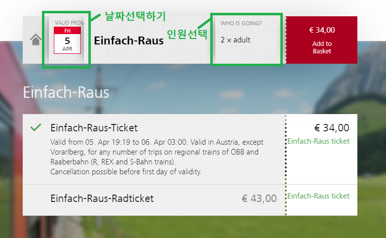 Einfach-Raus-Ticket을 클릭하고,