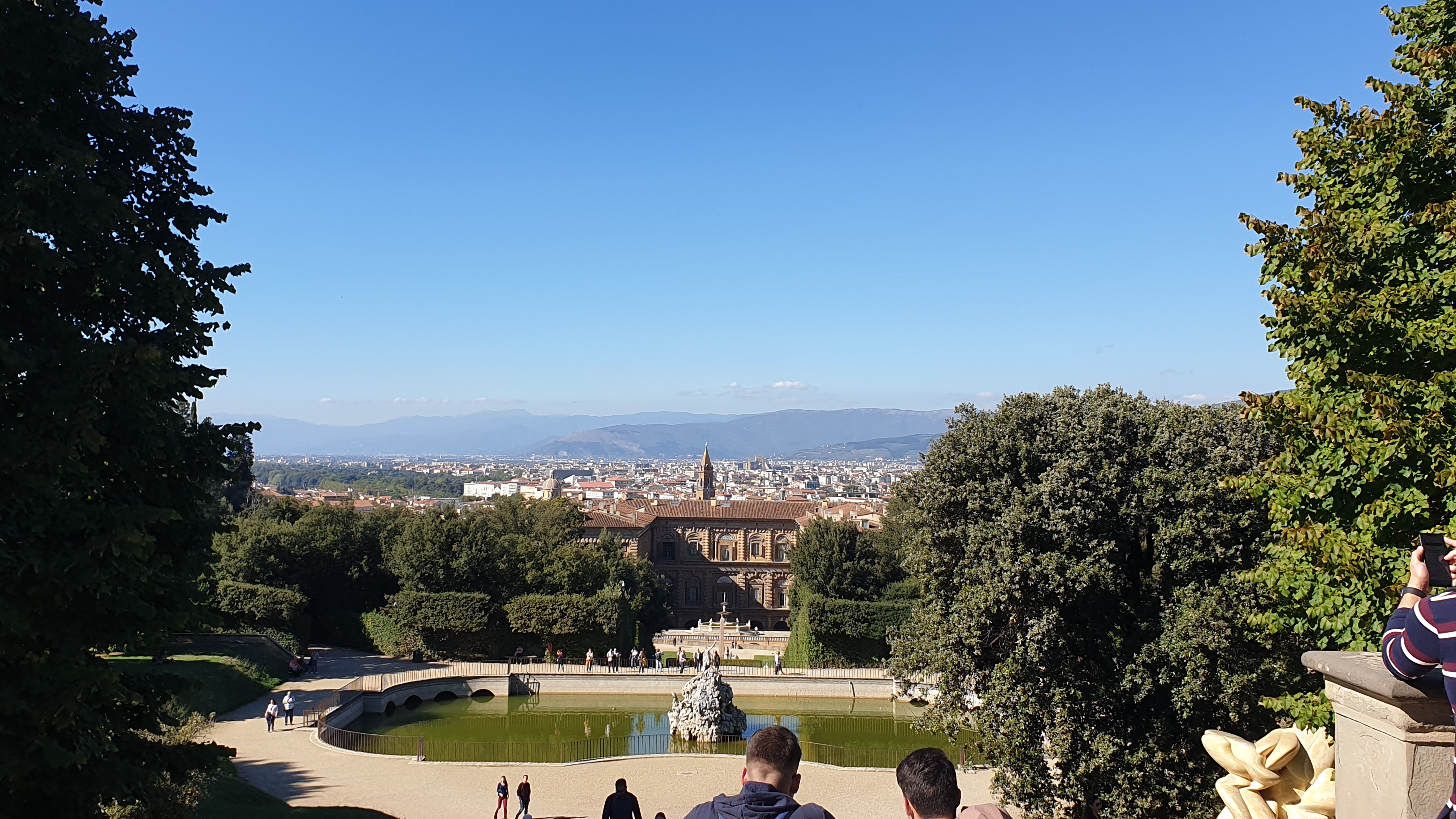 그래도 올라가서 내려도 보니 풍경이 좋습니다. 또 뒤쪽으로는 작은 산이보이는데 사이프러스나무들 때문에 이국적인 느낌이 물씬 납니다. 앞으로는 아르노 강이 흐르고, 뒤로는 작은 산이 있으니 피티궁전 위치가 좋은 것 같긴합니다.