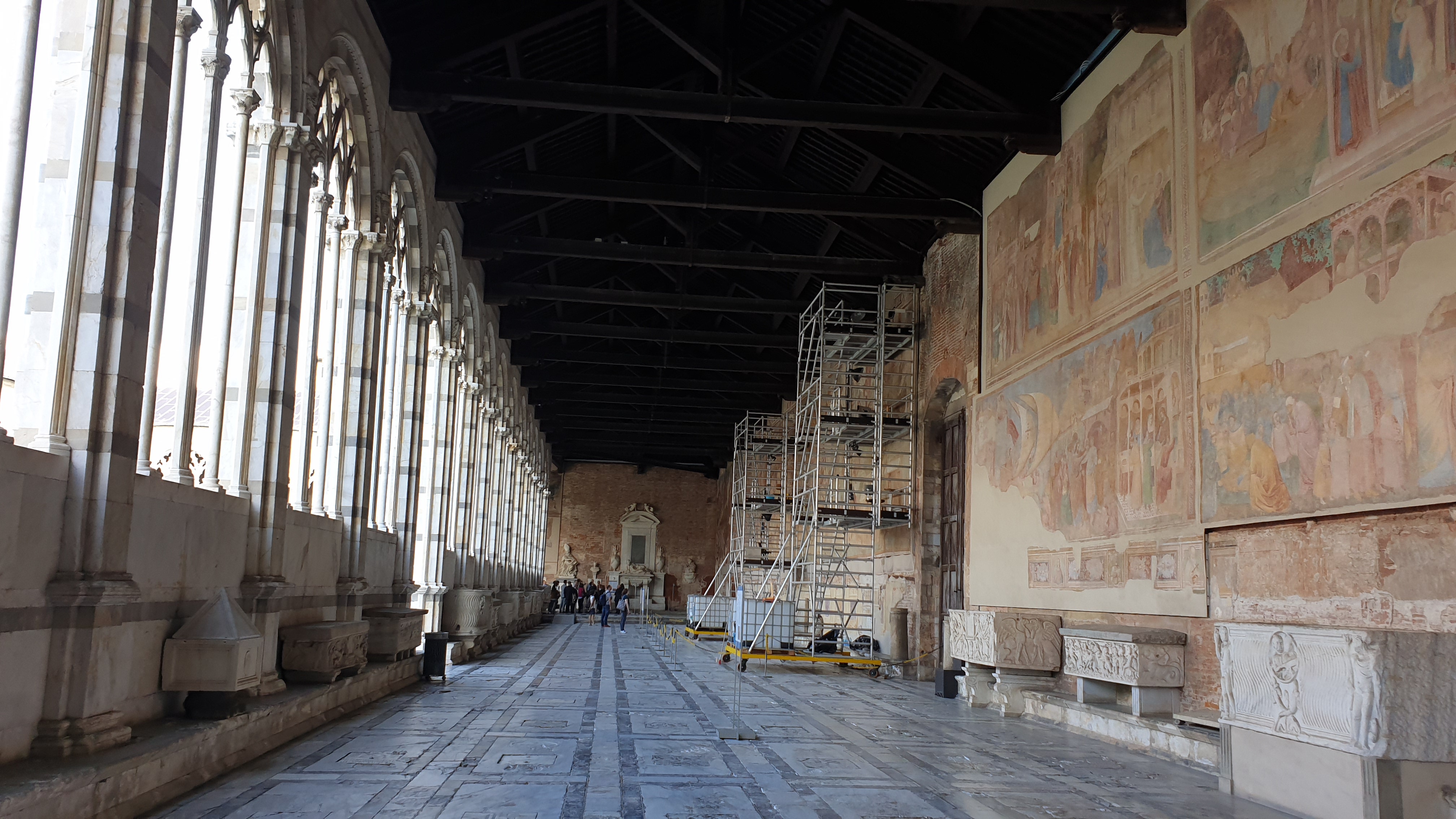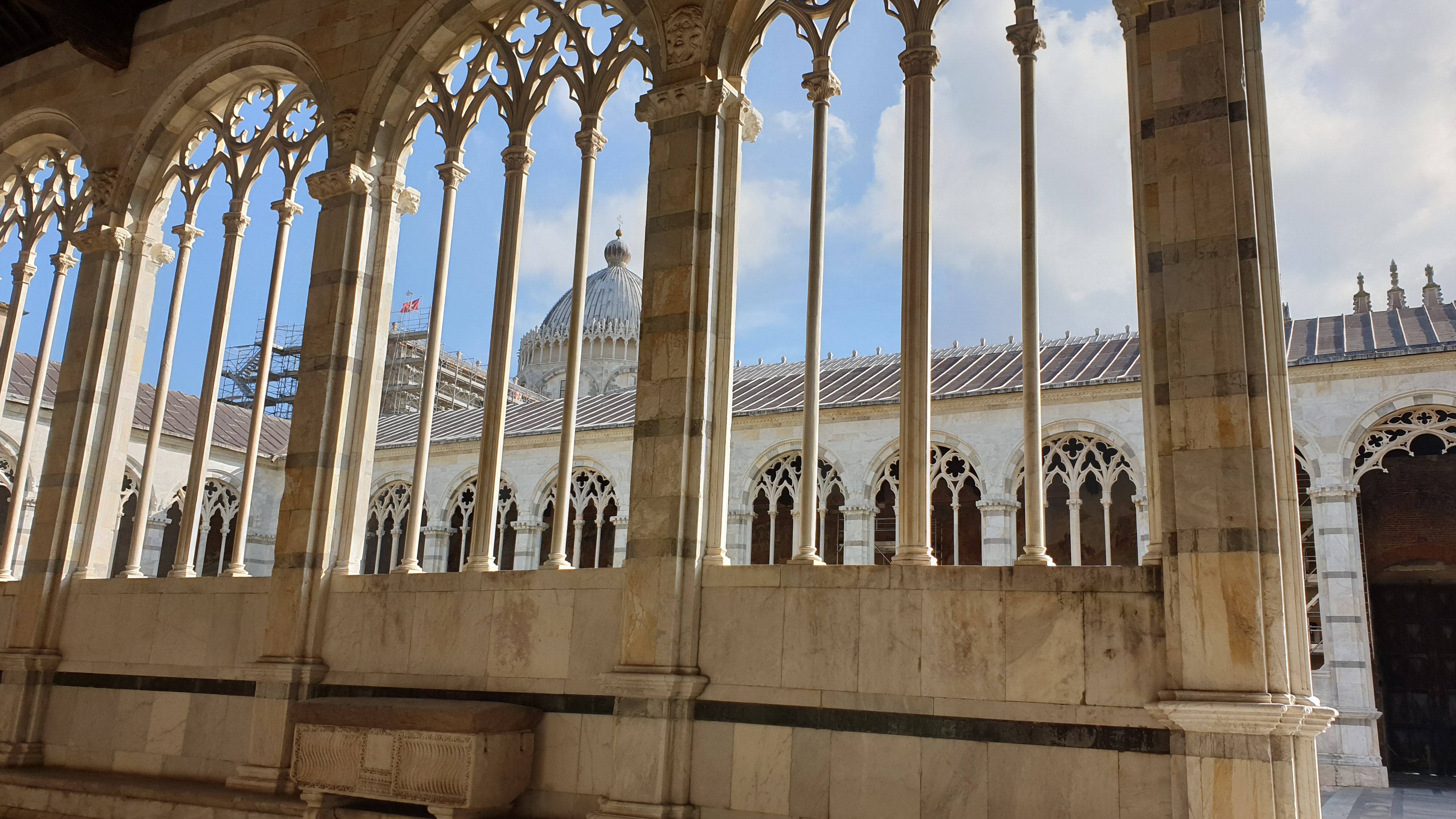 캄포산토는 이탈리아어로 "성역"이라는 의미로, 안뜰을 둘러싼 공동묘지의 한 형식이라고 합니다. 1278년에 짓기 시작해서 1358년에 완공되었다고 합니다. 예수 그리스도가 십자가에 못 박혔던 골고다에서 가져 온 흙으로 지어졌다고 합니다. 전설에 따르면 이 곳에 묻히면 24시간내에 부패될 것이라고 한다고 합니다.