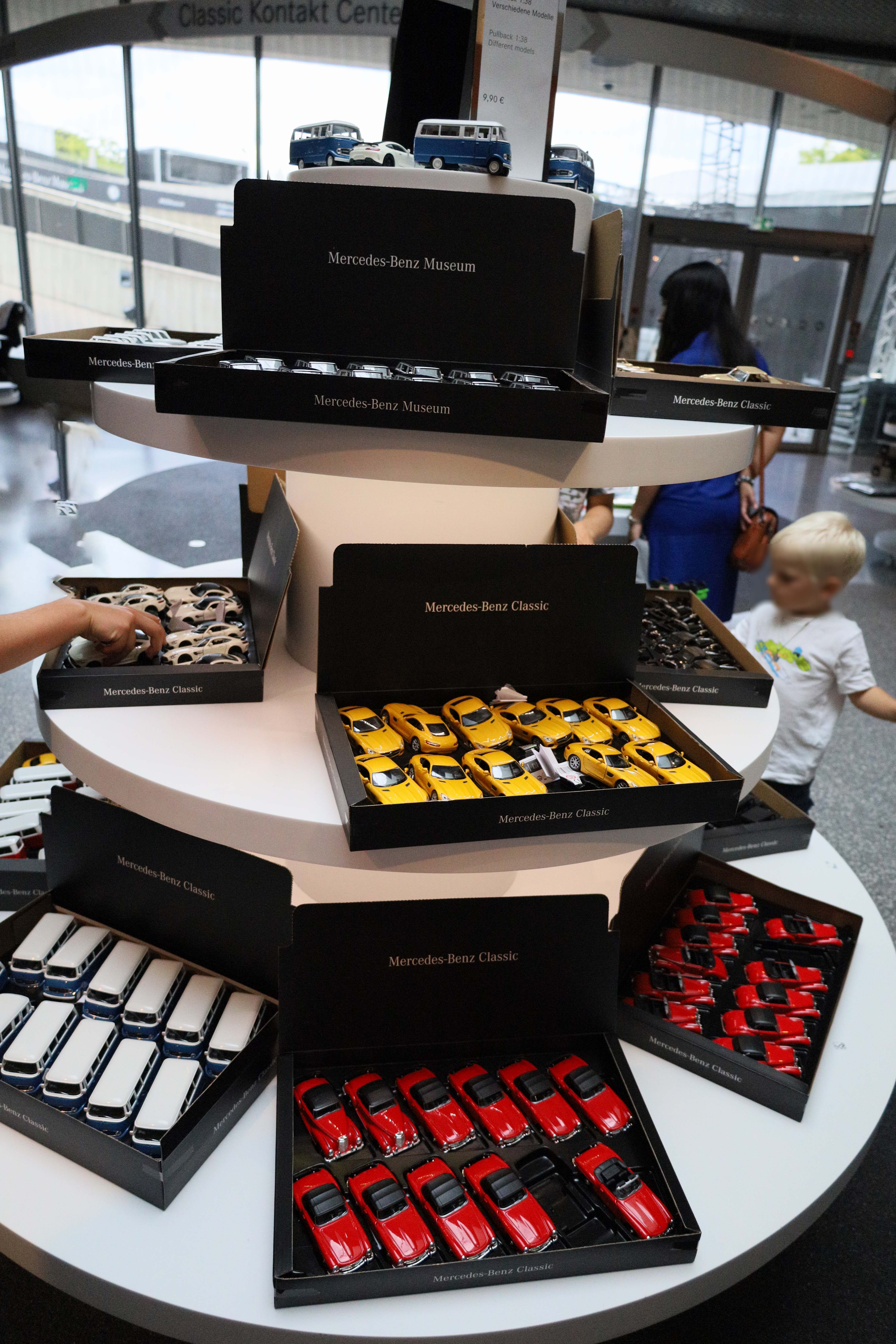 박물관 내 기념품 숍에서는 메르세데스 벤츠의 다양한 굿즈를 판매하고 있었습니다. 저는 메르세데스-벤츠의 시그니쳐 모델인 300SL Gullwing과 G바겐(G-Wagen)의 미니어쳐 모델들을 구입했습니다.